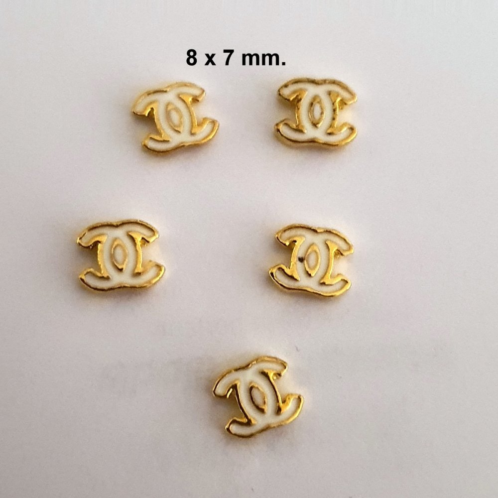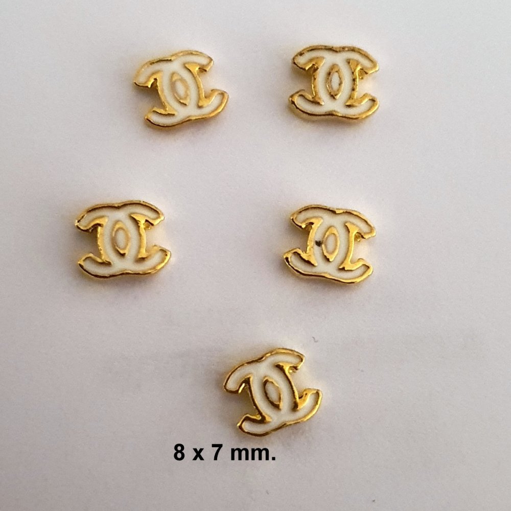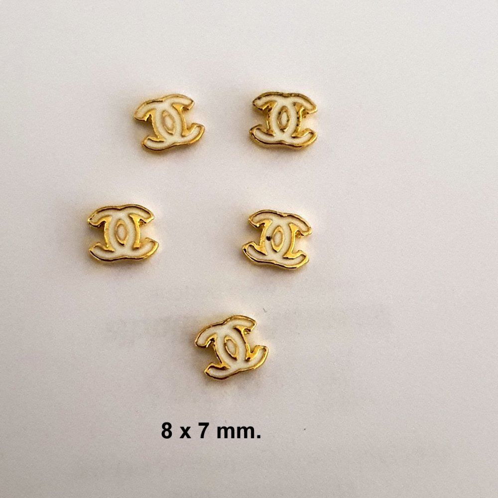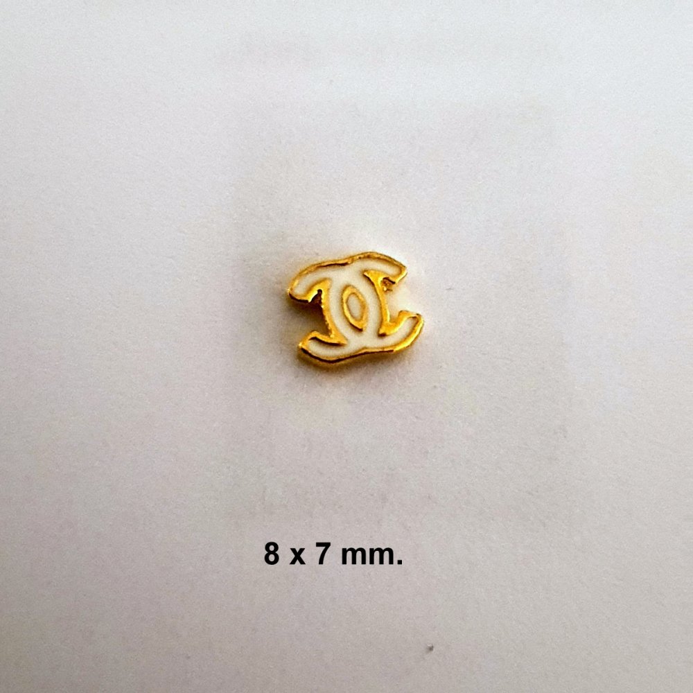 BIJOUX D'ONGLES CHARMS MARQUE DE LUXE pour NAIL ART en métal doré et blanc.
