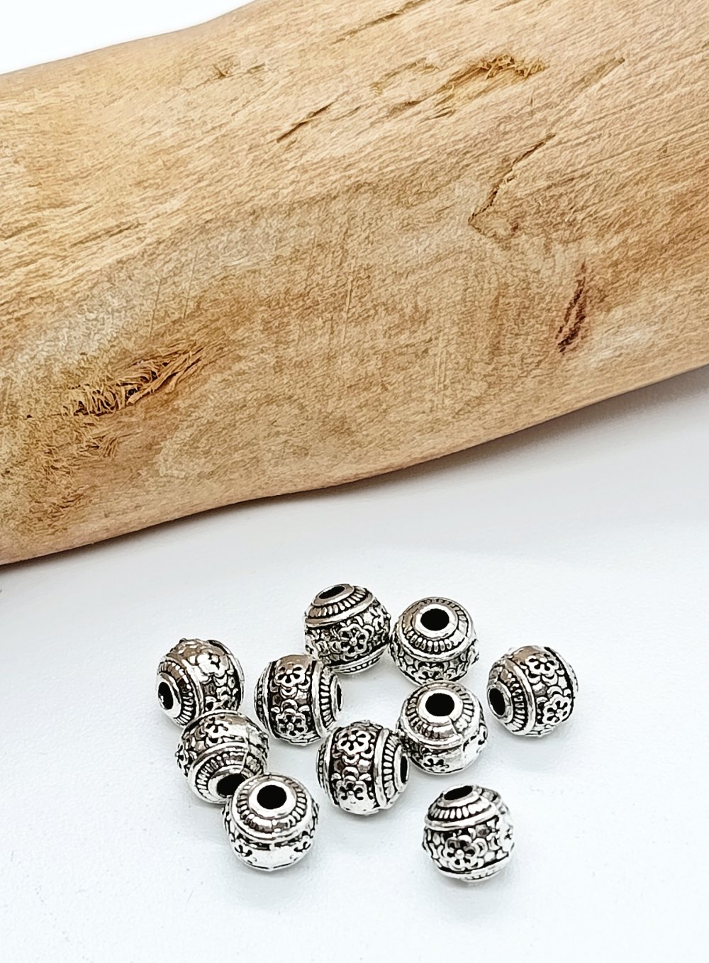 Lot de 10 perles métal argenté