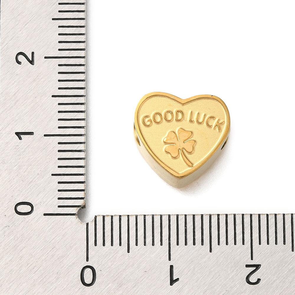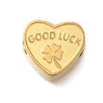 Perle en acier inoxydable doré 11,5 mm perle cœur BONNE CHANCE