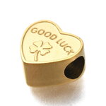 Ajoutez une touche de chance à vos créations avec cette magnifique perle en acier inoxydable doré. En forme de cœur, elle est gravée de l'inscription « GOOD LUCK » accompagnée d'un trèfle à quatre feuilles, symbole de bonheur et de prospérité.