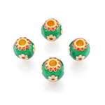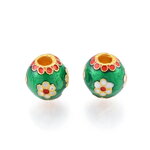 Perle fleur email vert 9,5 mm perle ronde doré mat email vert