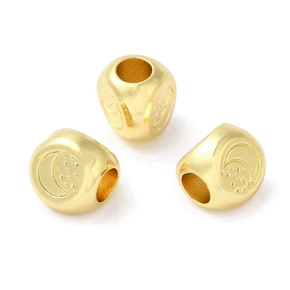 Perle lune et étoiles dorées 11 mm perle avec gros trou