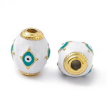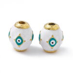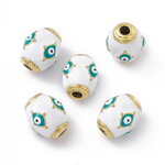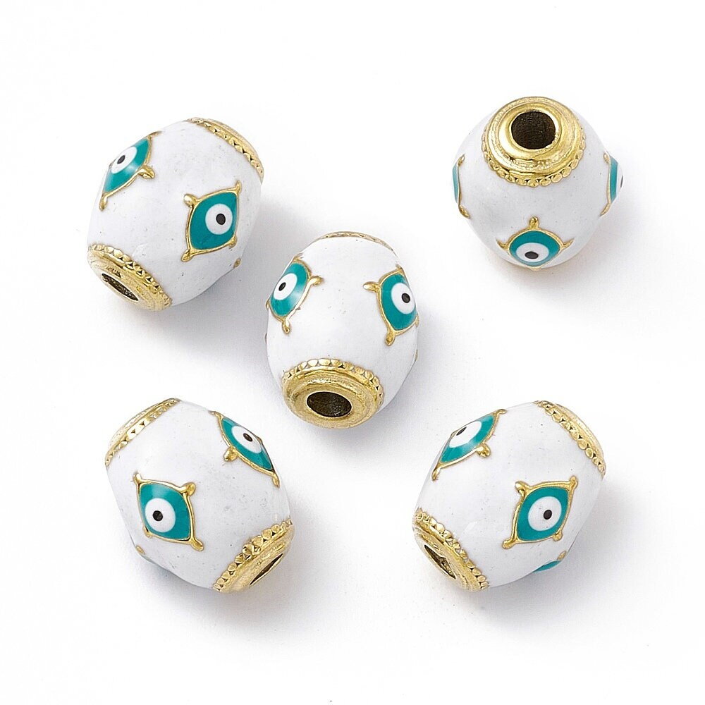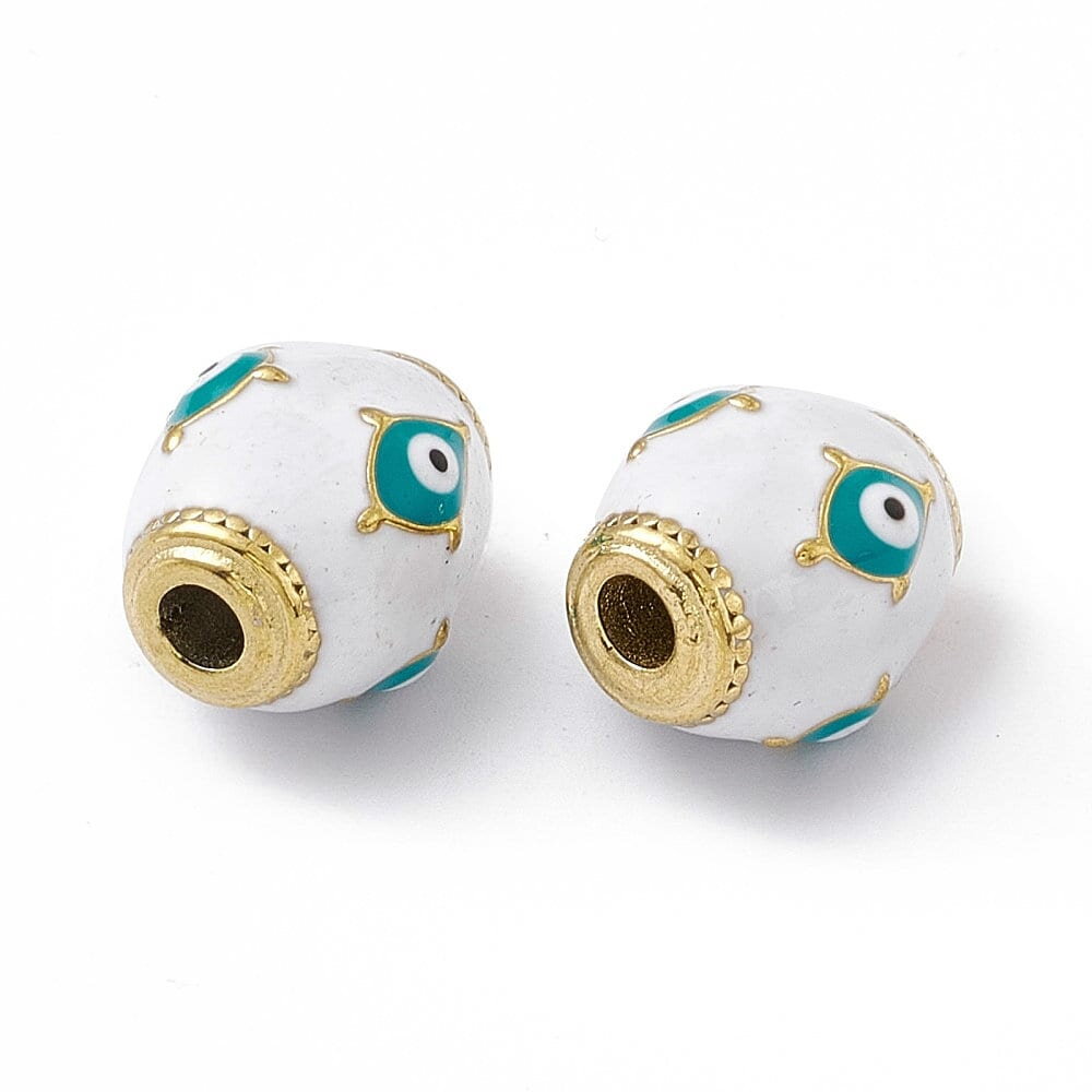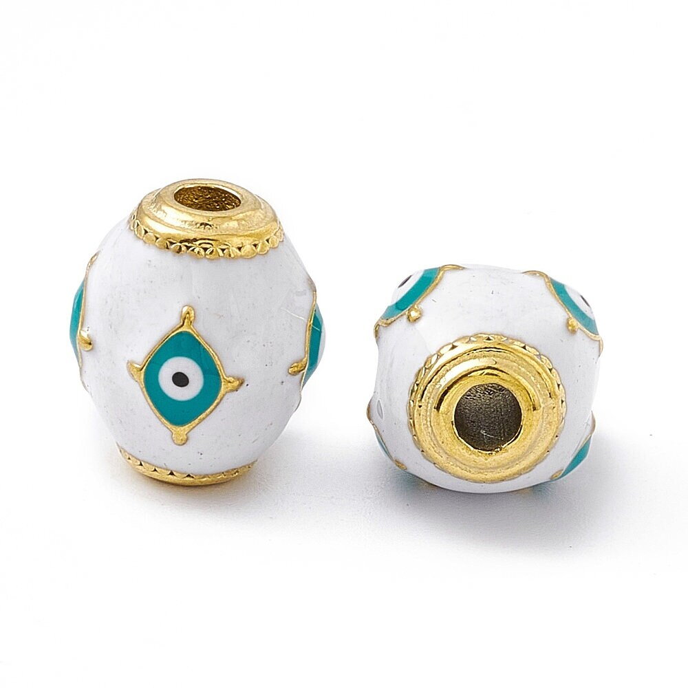 Perle oeil protecteur perle talisman perle intercalaire 14,5 mm résine émaillée blanc en acier Inoxydable finition doré 18 carats