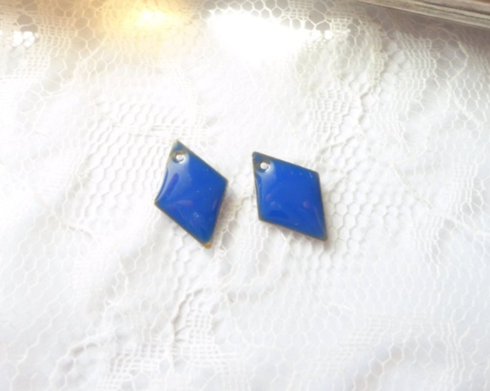 Breloques losanges - sequins émaillés - losange bleu -16 x 11 mm -x10, soldes