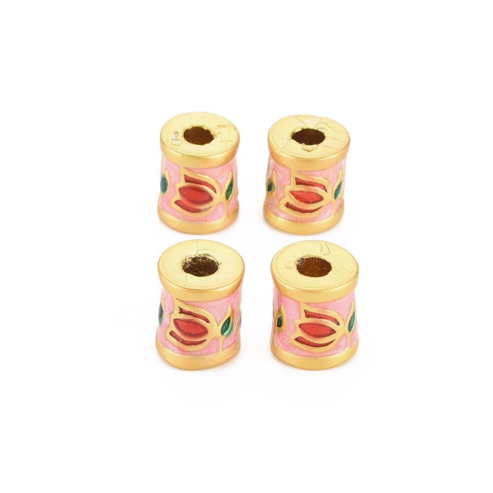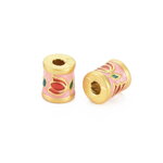 Tube perle cylindre doré 8mm tube perle doré fleur email