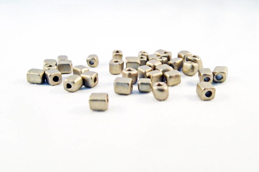 Lot de 10 Perles en Verre Pépite d'Or Carré Cube Cubiques de couleur doré antique, 3-4mm X 3-4mm.