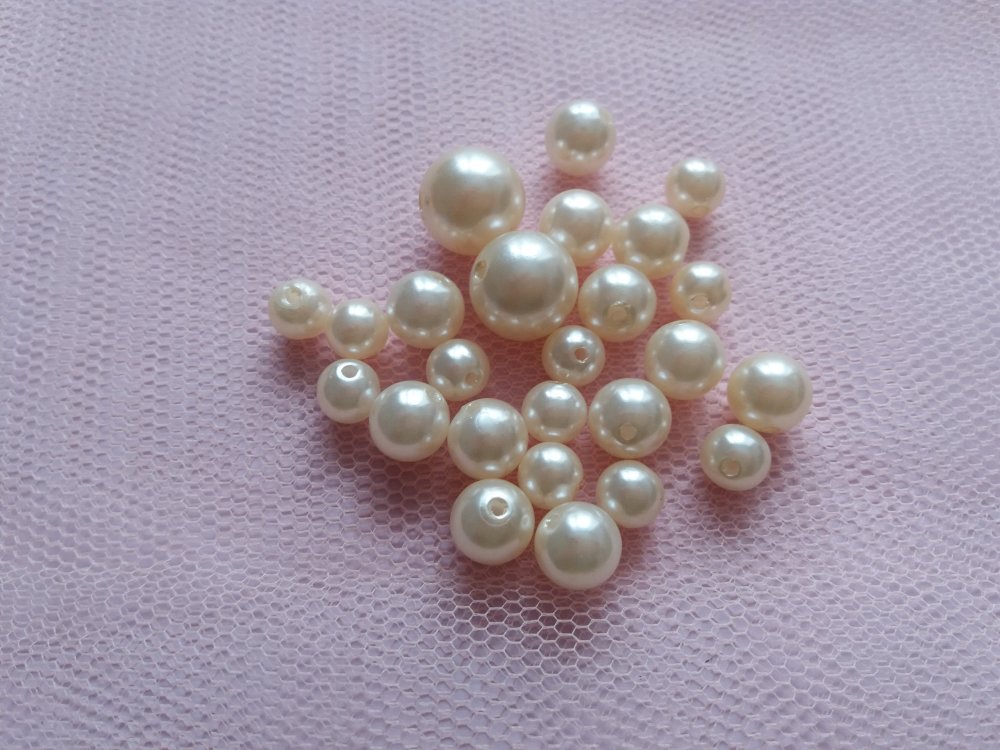 Petit lot de perles nacrées ivoire, 3 tailles différentes