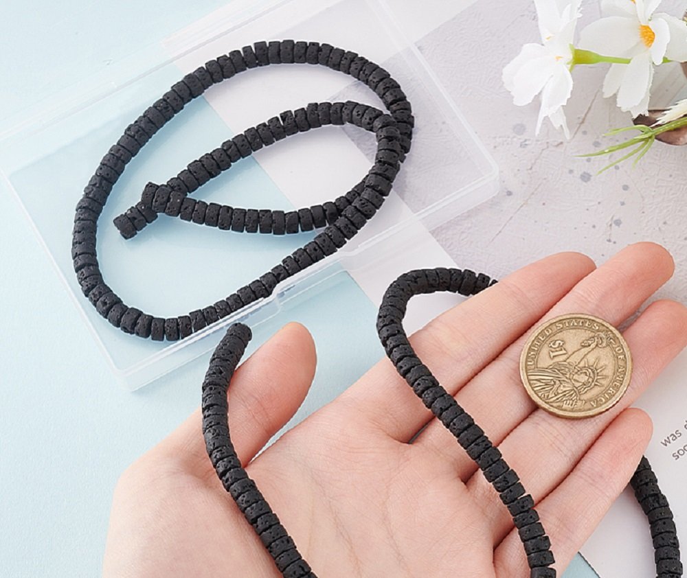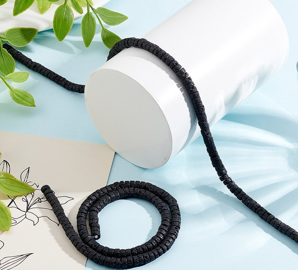 10 perles rondelles disques 6 x 2.5 mm noire en lave naturelle non teint.