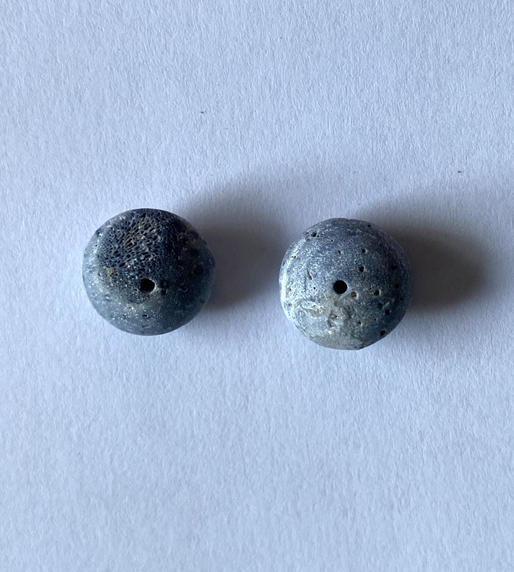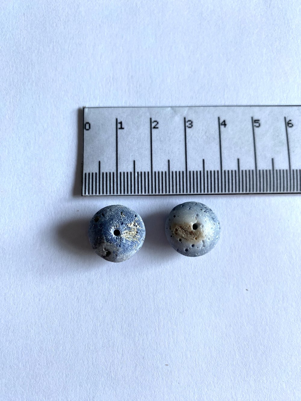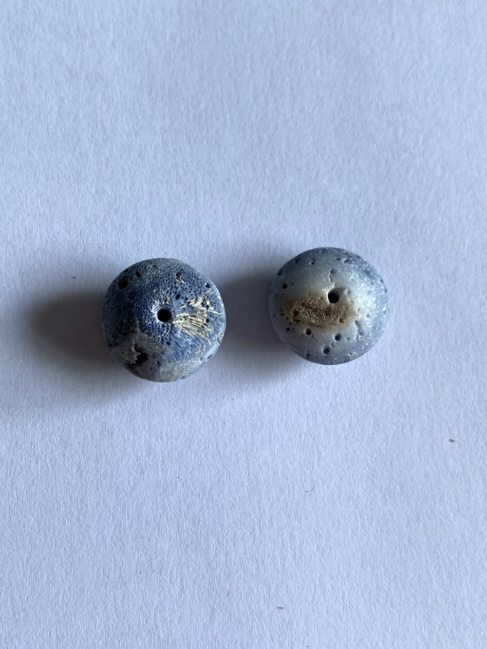 rondelles formes soucoupes taillées dans un corail spongieux fossilisé qui laisse apparaître les spores du corail,