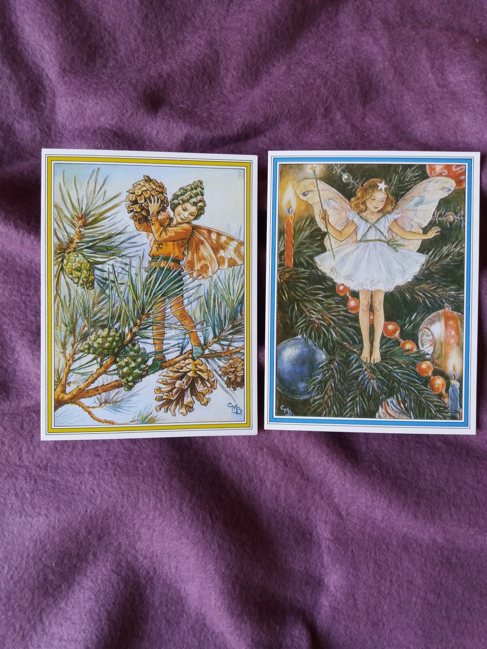 2 cartes de voeux illustrations fée et lutin, pour fêtes de fin d'année, Noël