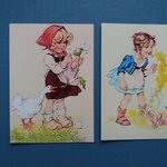 Lot de 4 illustrations anciennes enfants rétro - illustration vintage -