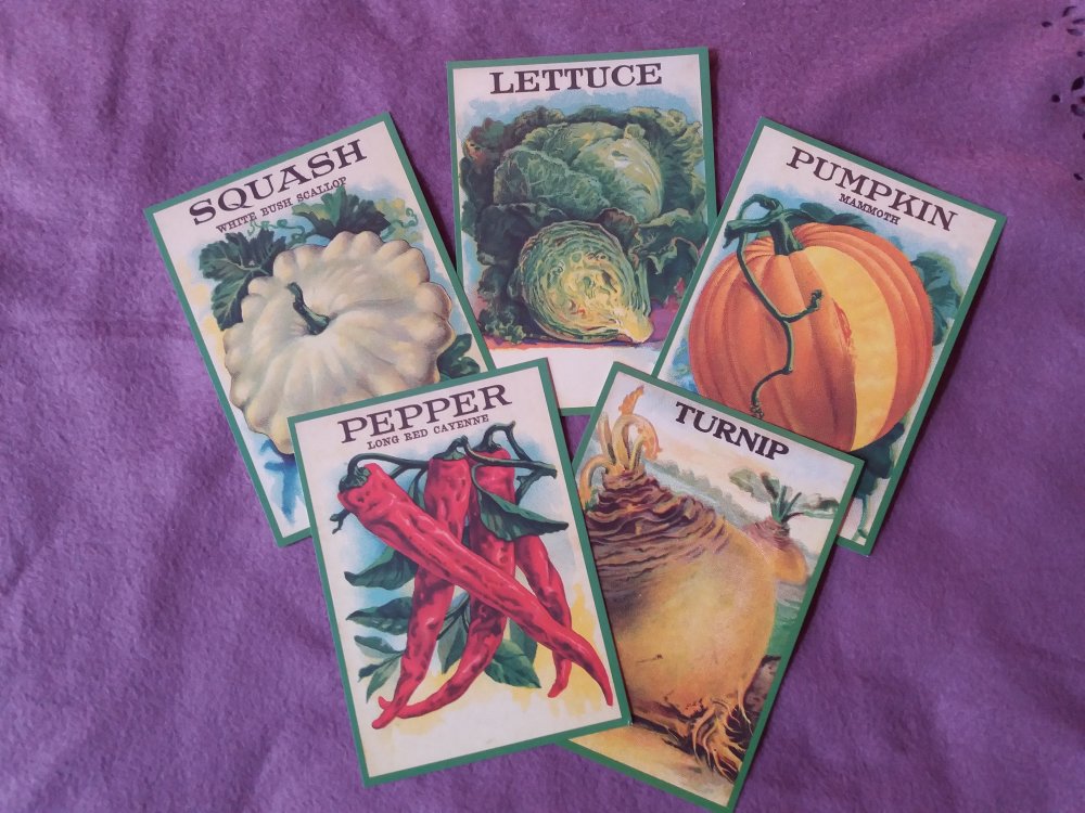 Je vous propose cet ensemble de 5 grandes cartes illustrées de légumes (nos en anglais); dans les tons verts, très décoratives pour vos créations artistiques décors de cuisine, home-déco, cadres, ...