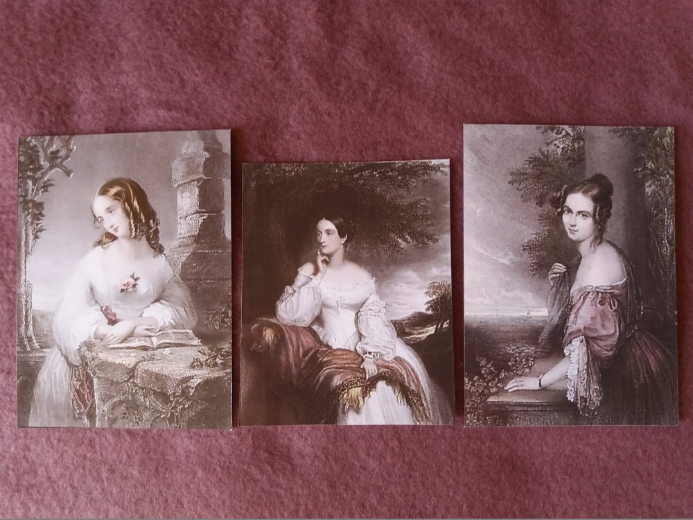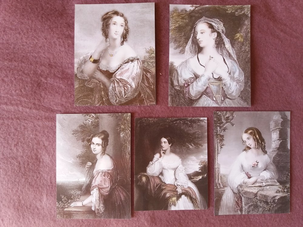 Lot de 5 images illustrations anciennes jeunes femmes romantiques