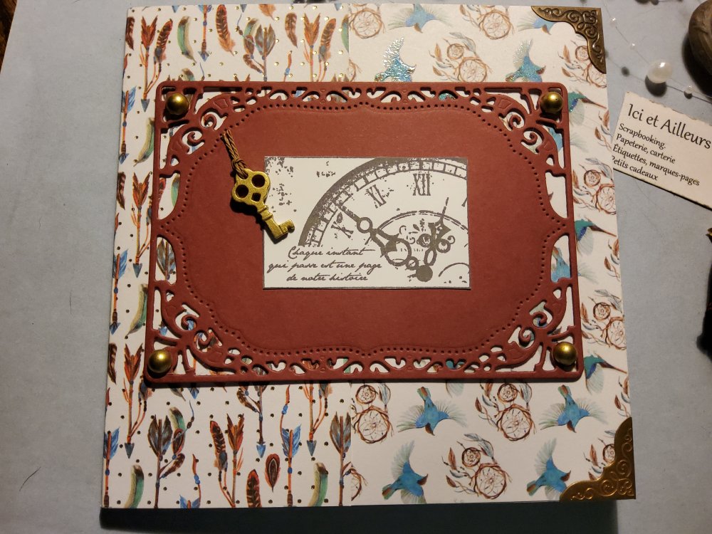 Joli album, album photo, carré, avec sur la face principale et le dos, thème le temps, les attrape reves, les plumes et oiseaux.