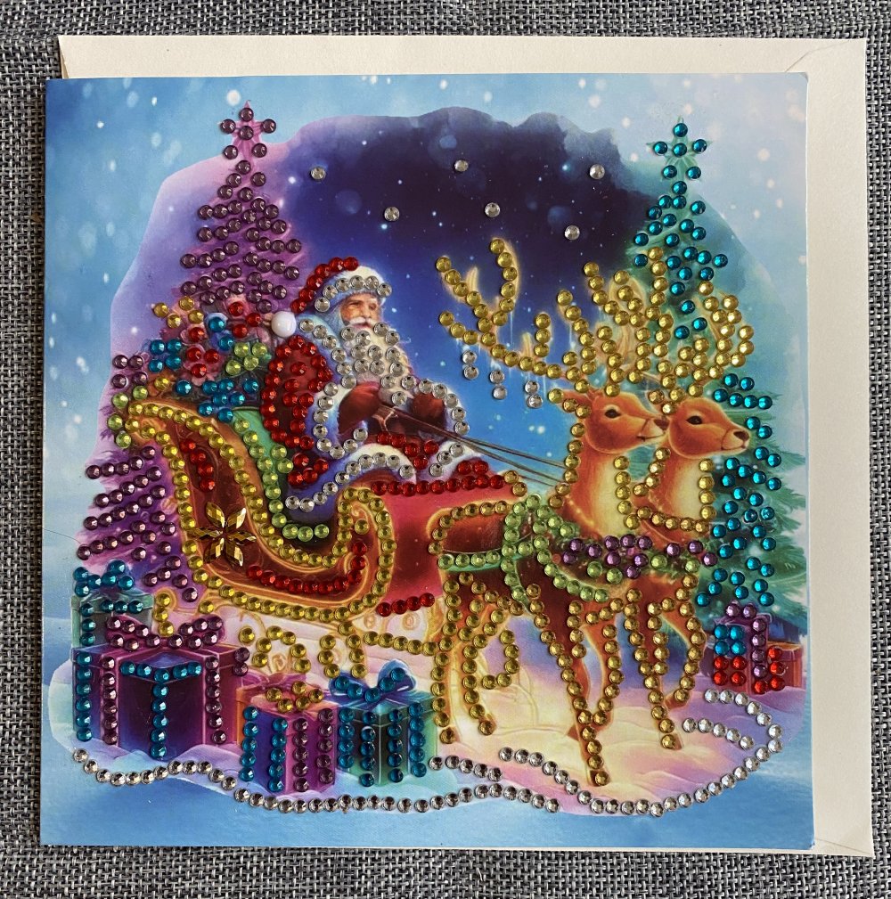 Carte de noêl "père noêl sur son traineau magiquel" en diamond painting - avec enveloppe