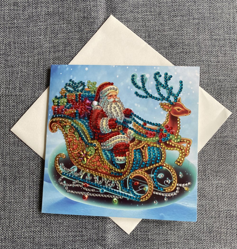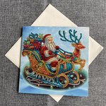 Carte de Noêl "Traineau Magique de Noêl" en Diamond Painting avec enveloppe, Père Noêl sur son traineau, strass, carte scintillante