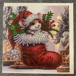CARTE DE NOEL "PETIT COMPAGNON DE NOEL" EN DIAMOND PAINTING AVEC SON ENVELOPPE, PETITE SOURIS DANS UNE BOTTE DE NOEL, STRASS, CARTE SCINTILLANTE,