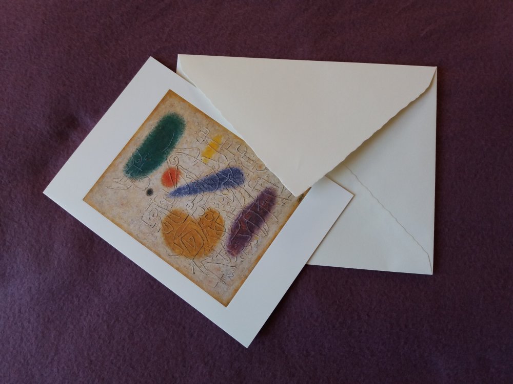 Carte Unicef, double, sans texte, format 19,5 cm x 13,7 cm, illustration moderne et colorée "Mur de temple", intérieur blanc.