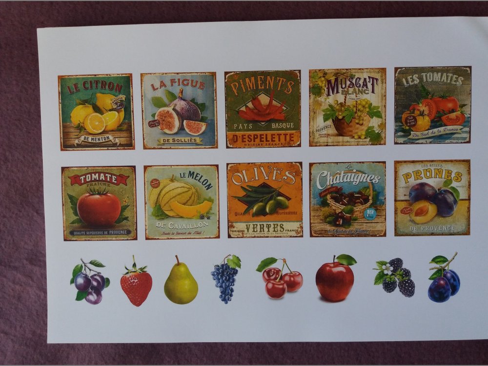 Planche adhésive illustrations vintage plaques métal fruits et légumes