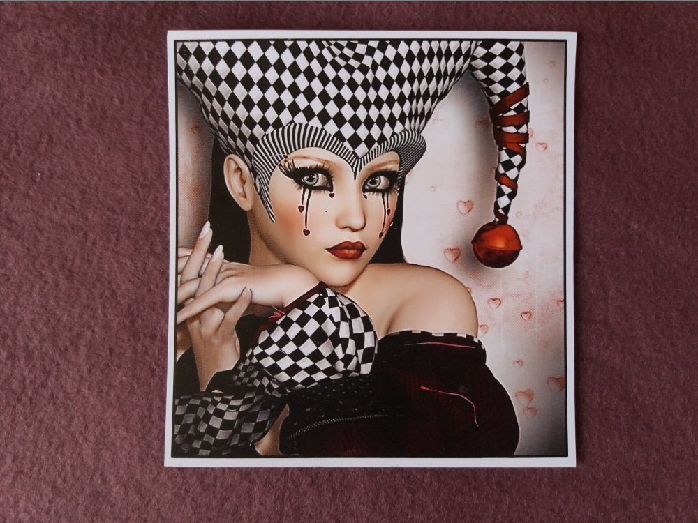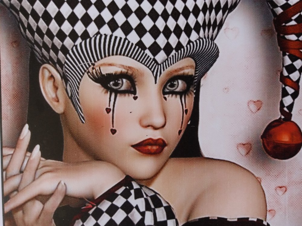 Illustration d'un beau visage pouvant s'inspirer de l'univers "Commedia dell'Arte", imprimée sur papier photo brillant 260 g.