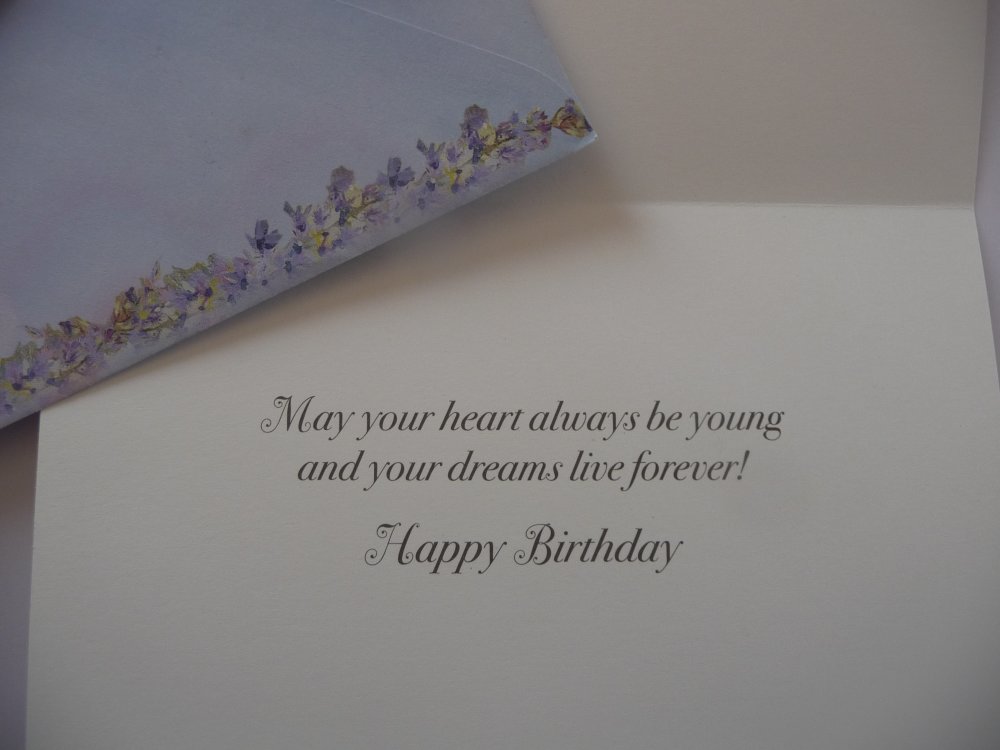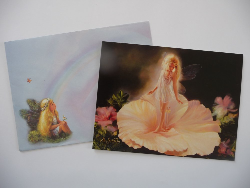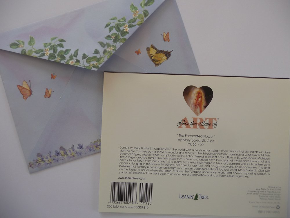 Je vous propose cette magnifique carte anniversaire avec une illustration de Mary Baxter Saint-Clair, "The Enchanted Flower". L'artiste illustratrice américaine s'est spécialisée dans l'univers elfique et les représentations d'anges, de fées, de lutins et autres petits personnages.