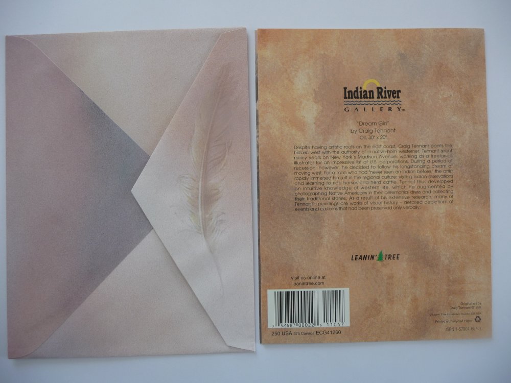 Jolie carte double, représentant une jeune amérindienne, illustration "Dream Girl" de Greg Tennant, un artiste/illustateur new-yorkais fortement inspiré par la culture et les coutumes des indiens d'Amérique.