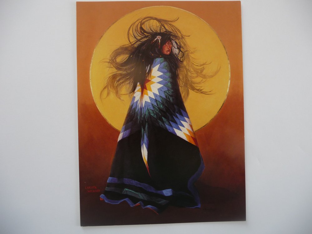 Jolie carte double, représentant une jeune amérindienne, illustration "Lakota Wicahpi" de Shirley Arrants, une artiste peintre américaine sensible à la culture des indiens d'Amérique.