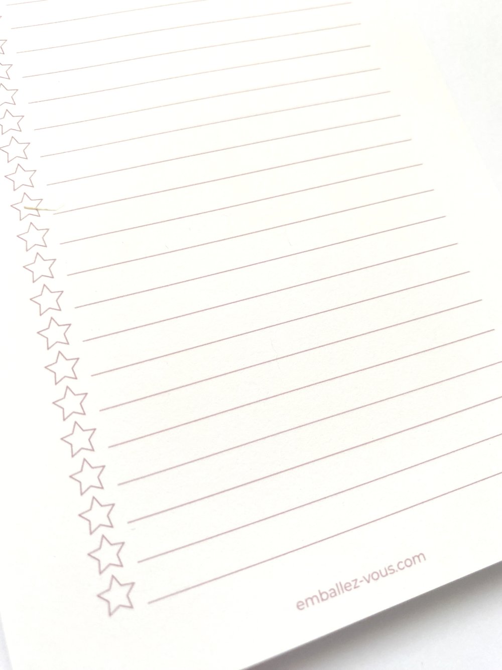 50 feuilles détachables de 80 g, chacun avec 20 lignes et cases à cocher