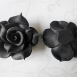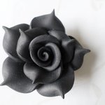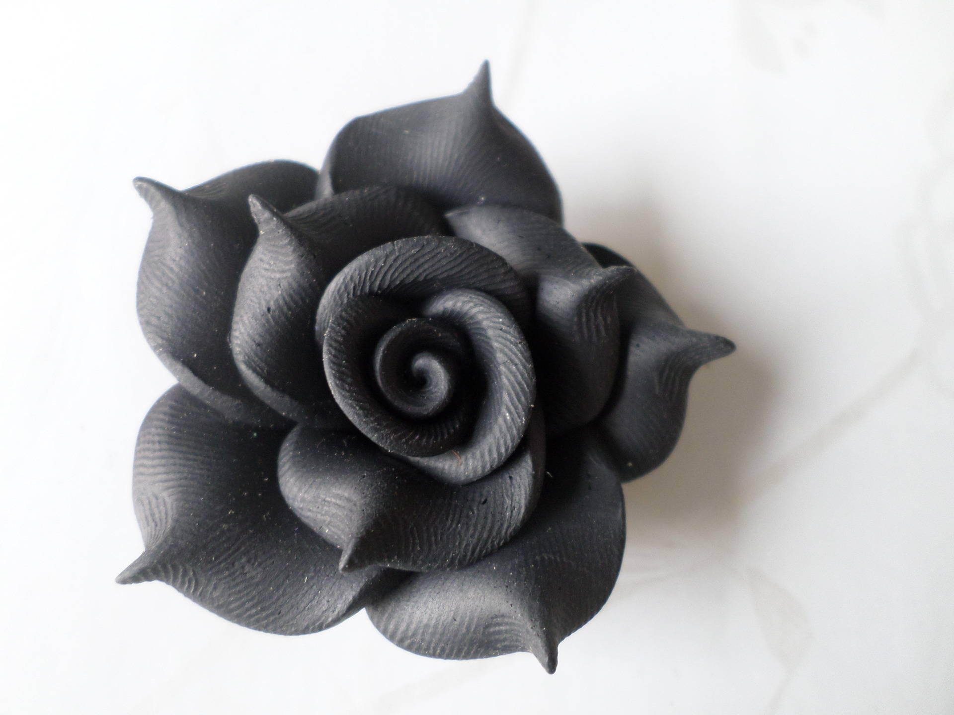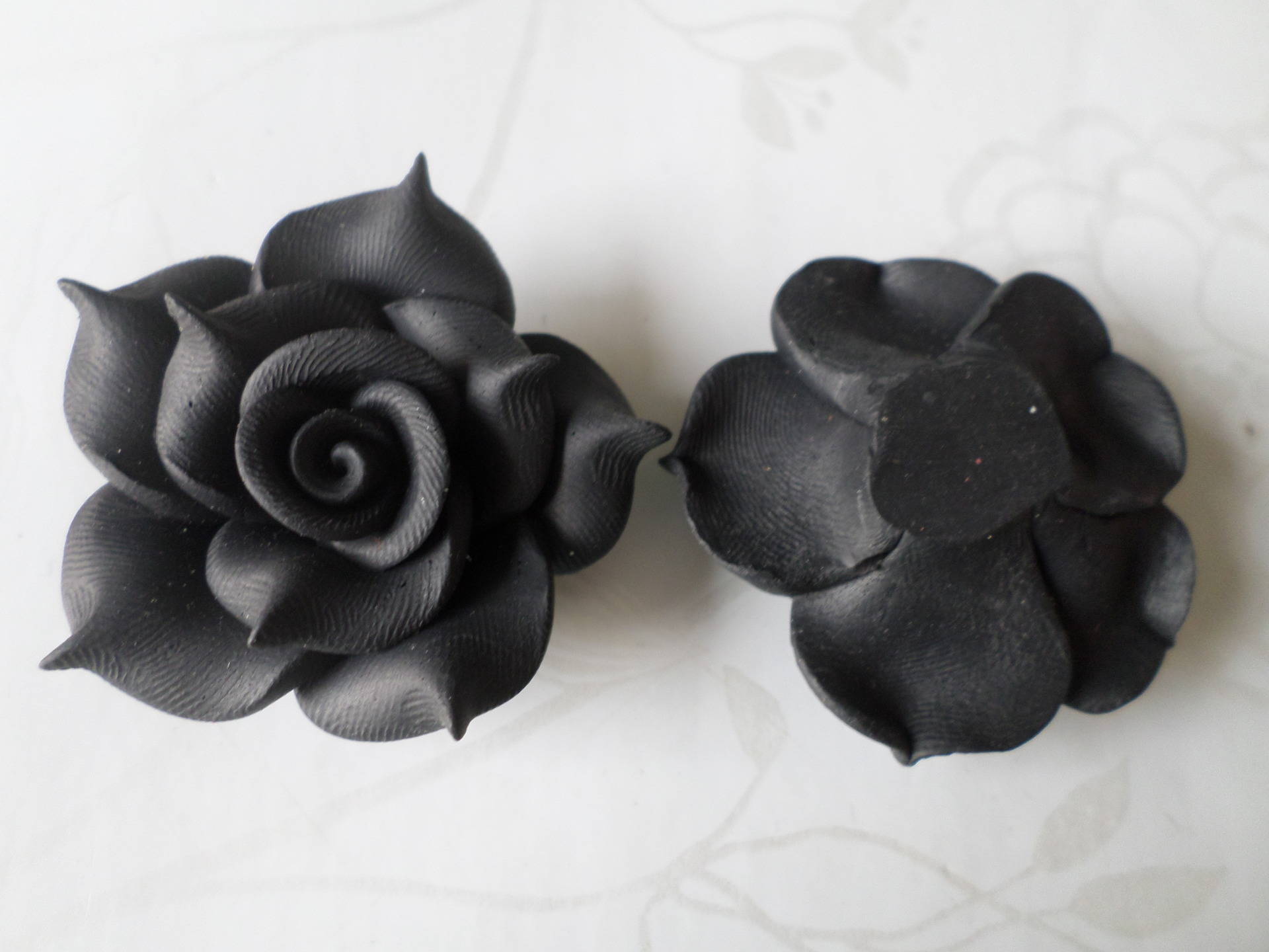 cette très belle et grosse perle en forme de fleur de couleur noir en pâte polymère.