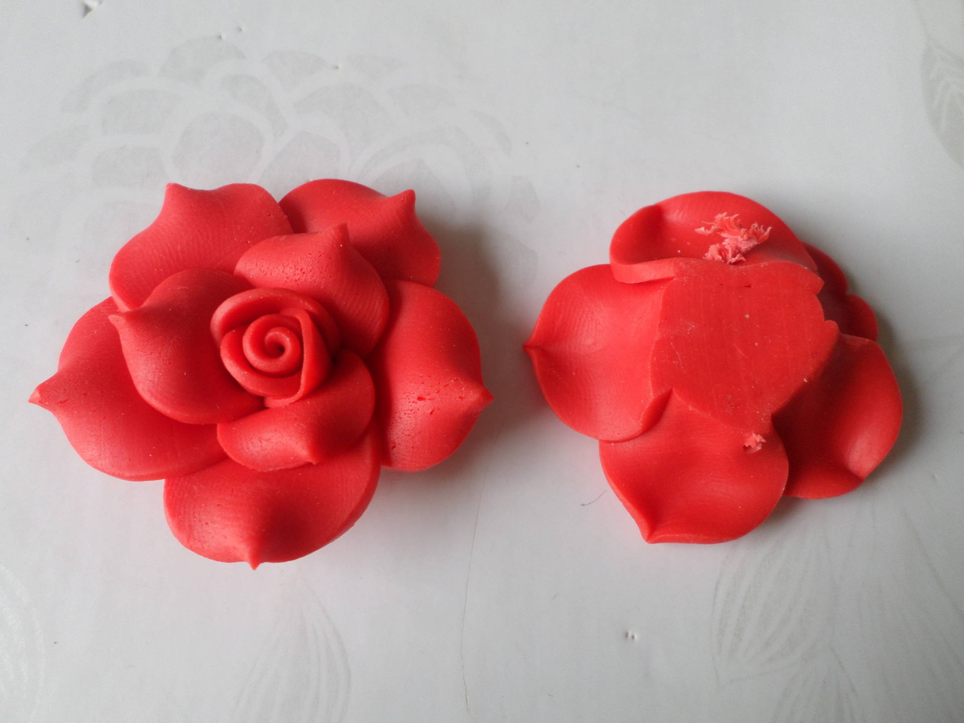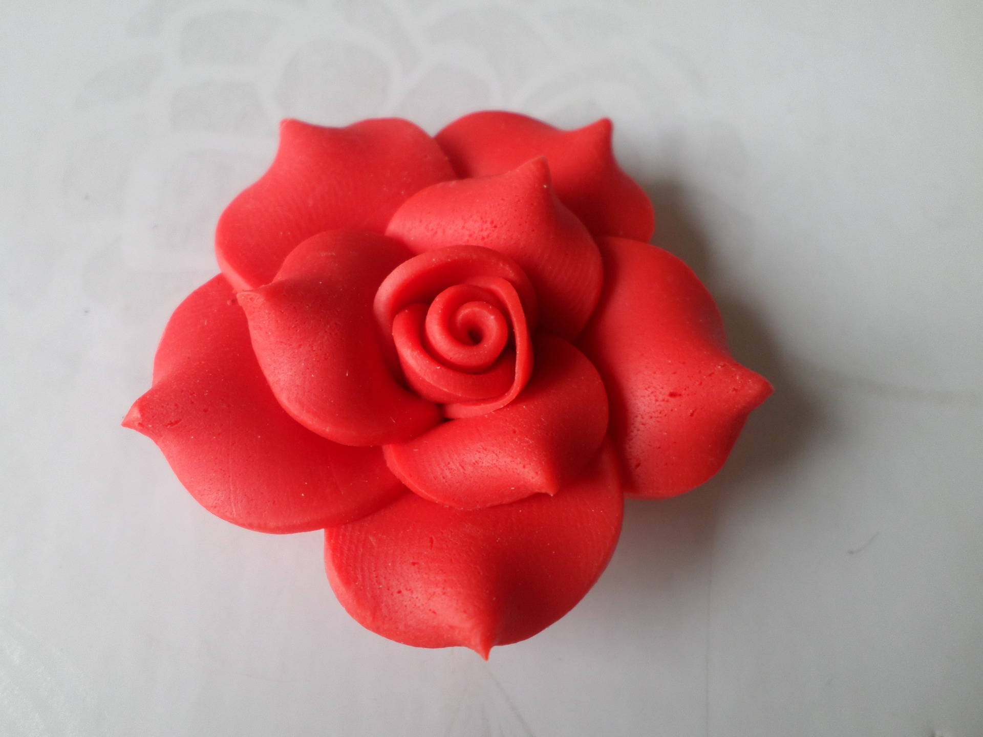 cette très belle et grosse fleur de couleur rouge en pâte polymère.