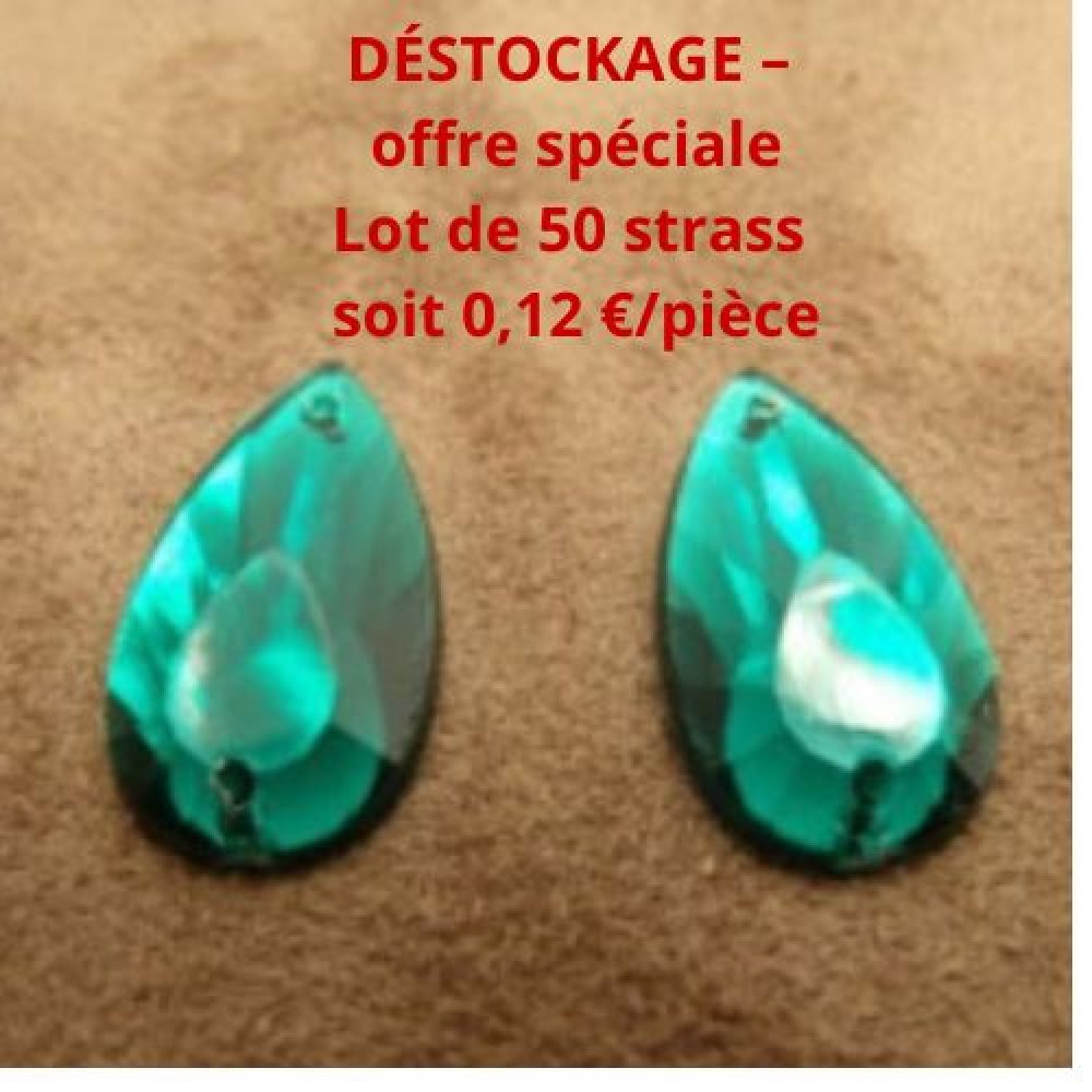 Déstockage Strass Goutte Vert Foncé 22x12 mm – Lot de 10, 20 ou 50