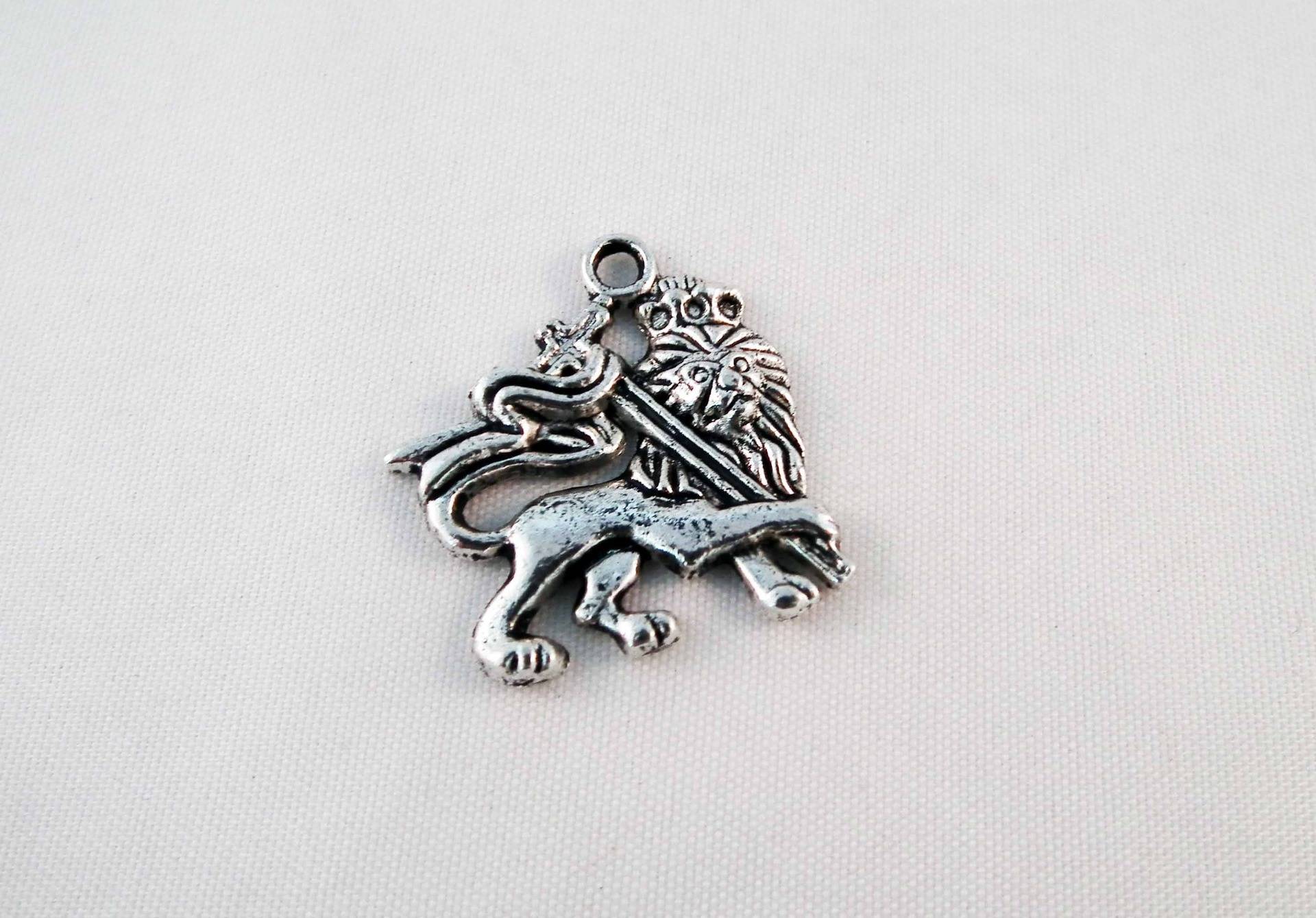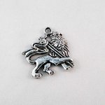Pendentif Breloque Lion Couronne et Croix de couleur Argent Vieilli
