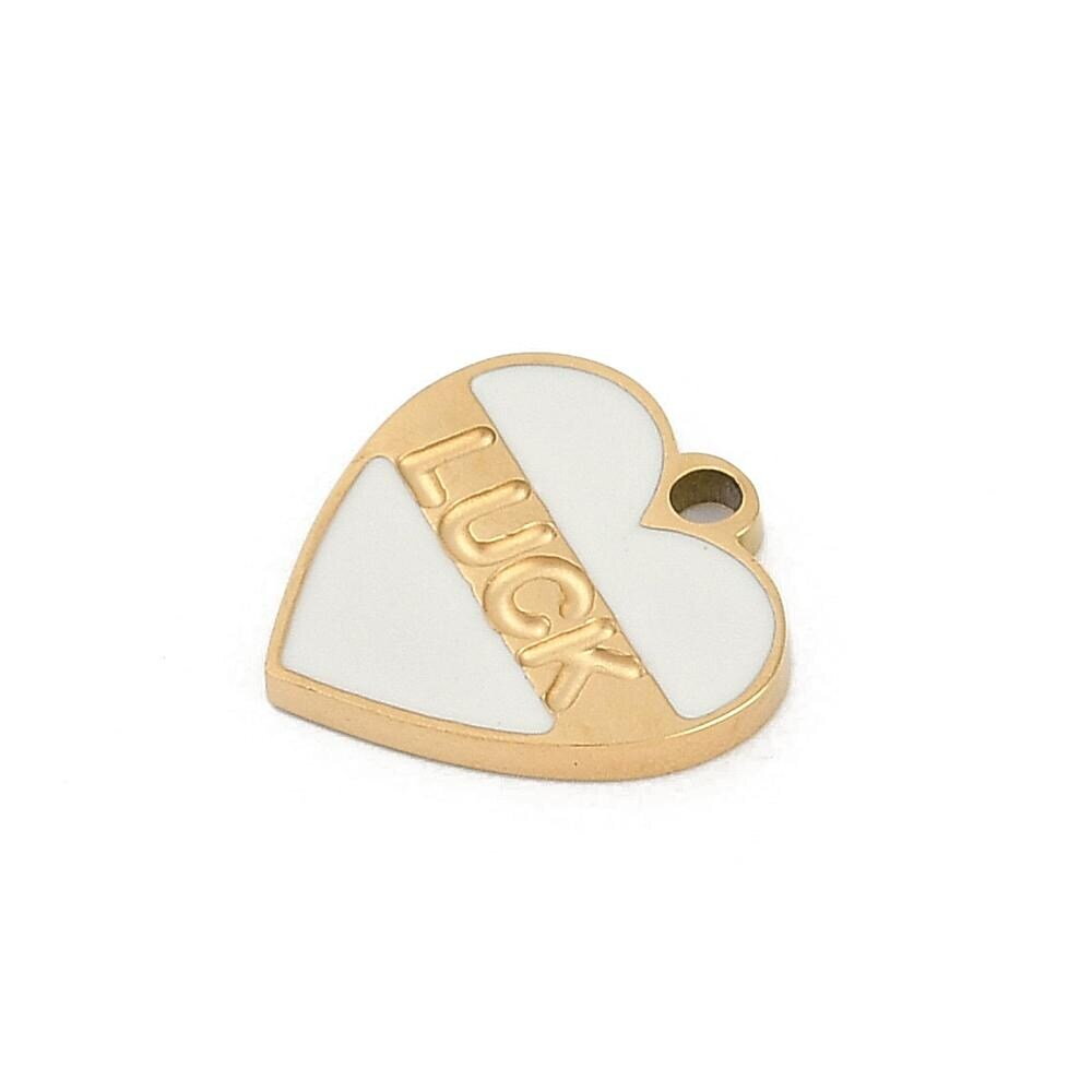 Pendentif cœur porte bonheur acier inoxydable doré cœur émaillé breloque cœur