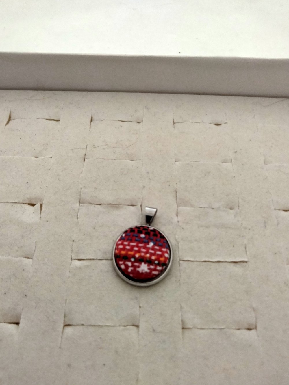 pendentif cabochon acier argent inoxydable et tissu noel enfant