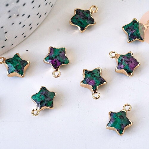 Craquez pour ce petit pendentif étoile en rubis sur zoisite naturelle avec son support doré.