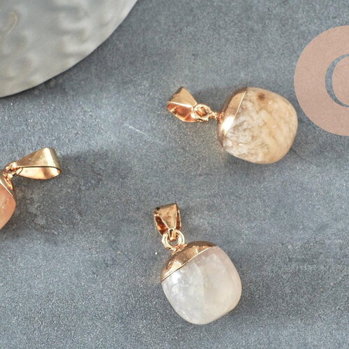 Pendentif goutte agate cherry blossom fer doré 17-19mm x1 (G4380)