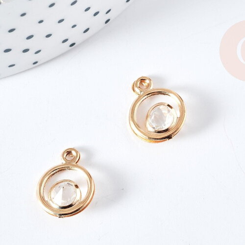 Pendentif rond fer doré cristal zircon 16mm, création bijoux doré, x1 G8959
