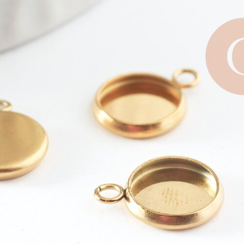 Pendentif rond support cabochon acier 304 inoxydable doré ip 8mm, x2 (G4222)