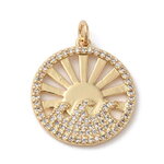 Pendentif soleil plaqué or breloque soleil doré médaille soleil et vagues