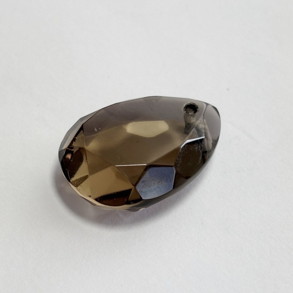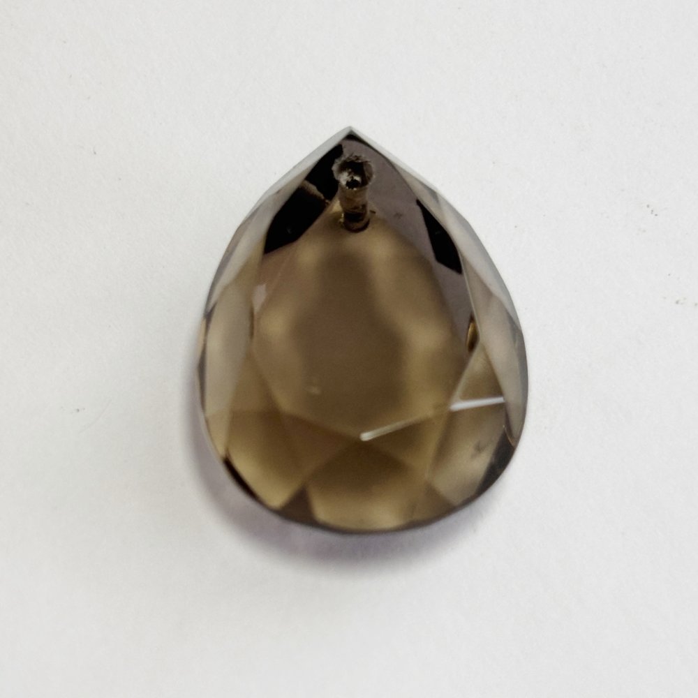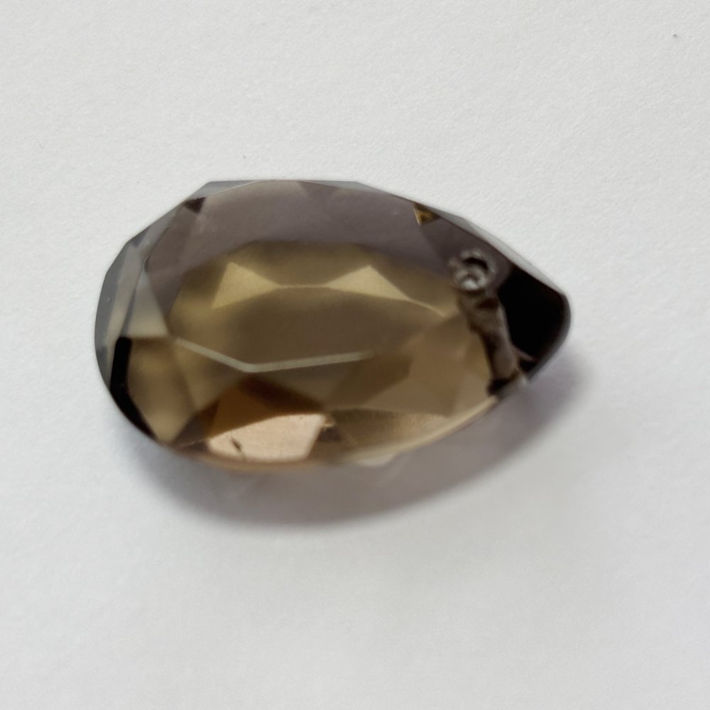 Perle naturelle en quartz fumé, forme larme facettée de 25 mm, percée verticalement. Transparence brune lumineuse, idéale pour pendentif ou création de bijou raffiné.