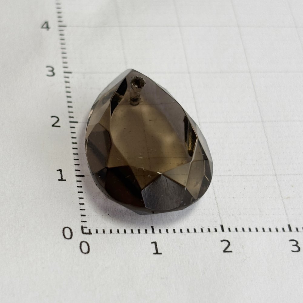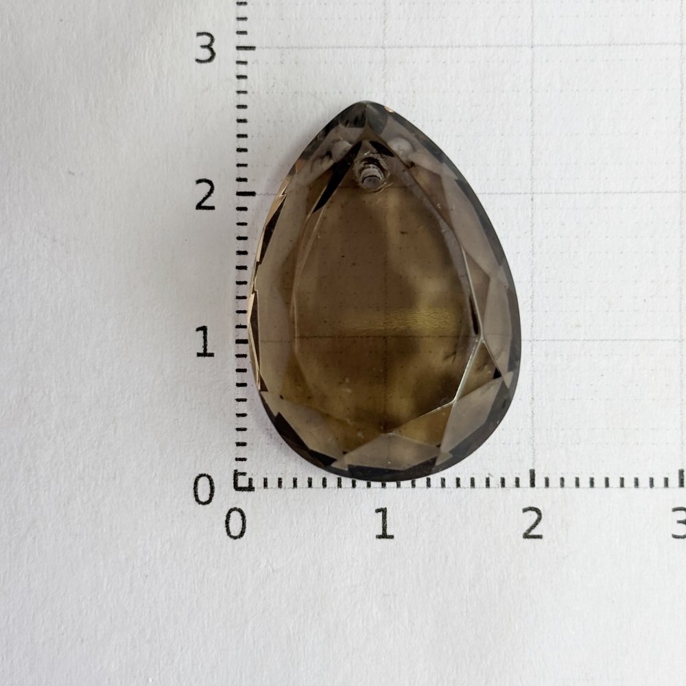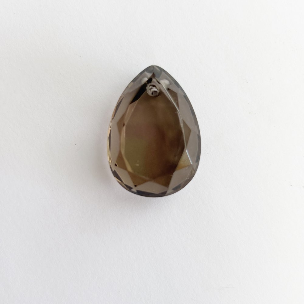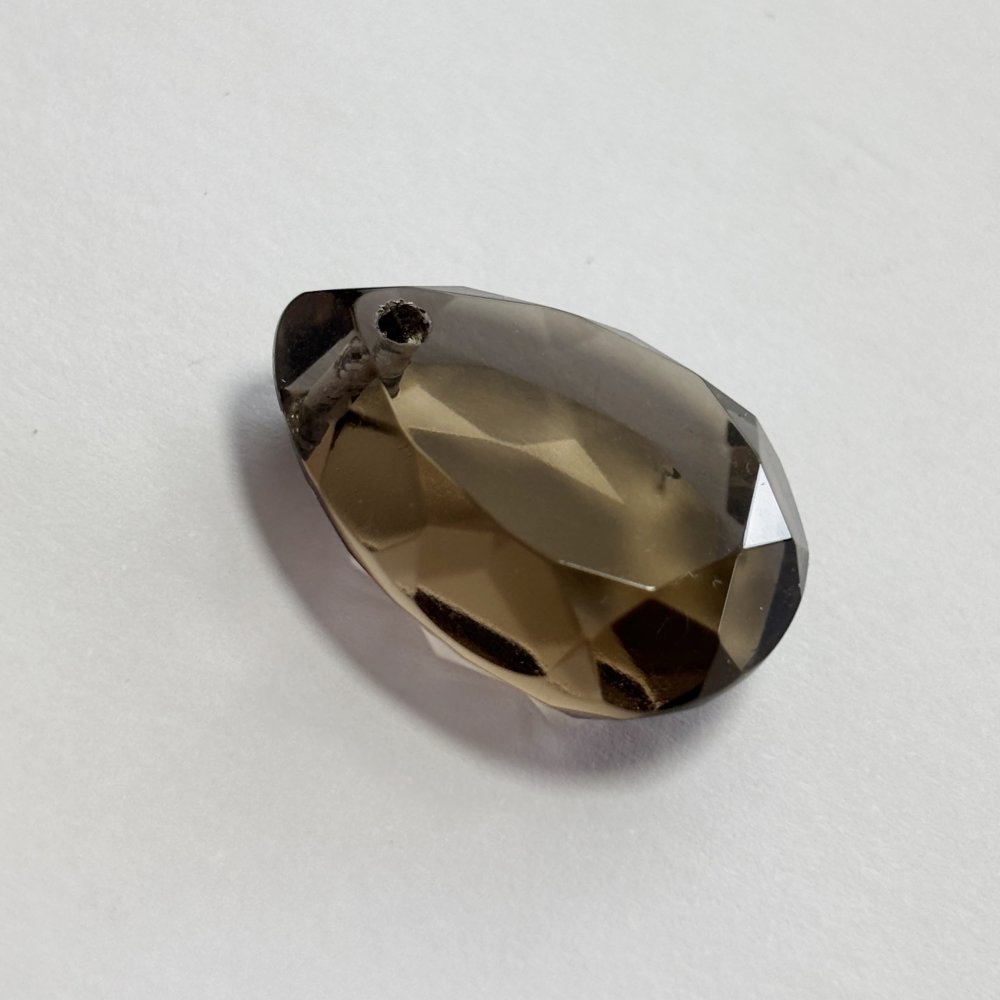 Perle naturelle en quartz fumé, forme larme facettée de 25 mm, percée verticalement. Transparence brune lumineuse, idéale pour pendentif ou création de bijou raffiné.