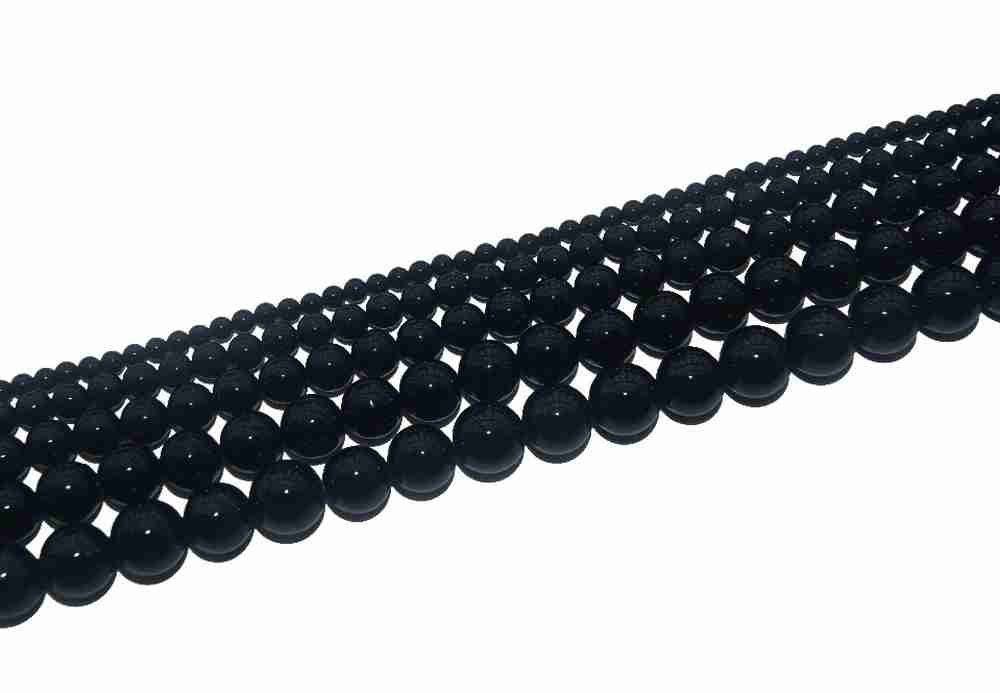 LOT DE 10 PIECES - AGATE NOIRE - ONYX - PIERRE GEMME - PERLES RONDES - NOIR