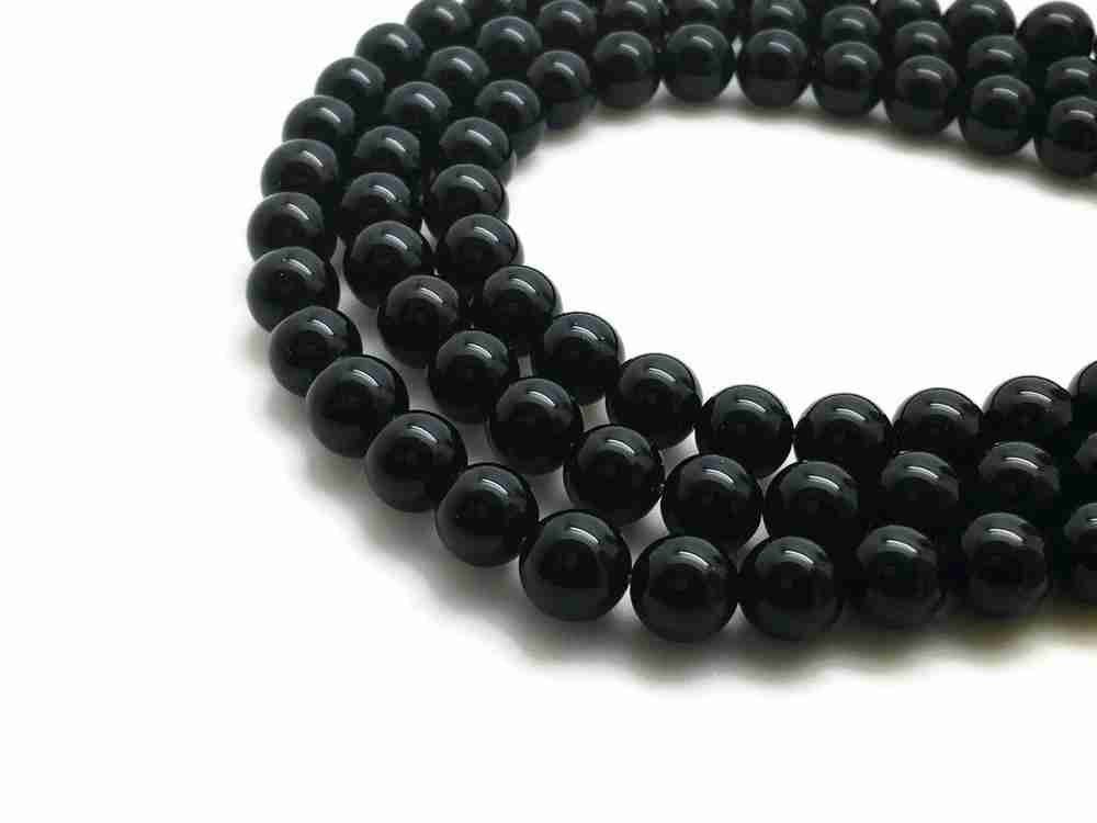 LOT DE 10 PIECES - AGATE NOIRE - ONYX - PIERRE GEMME - PERLES RONDES - NOIR