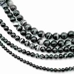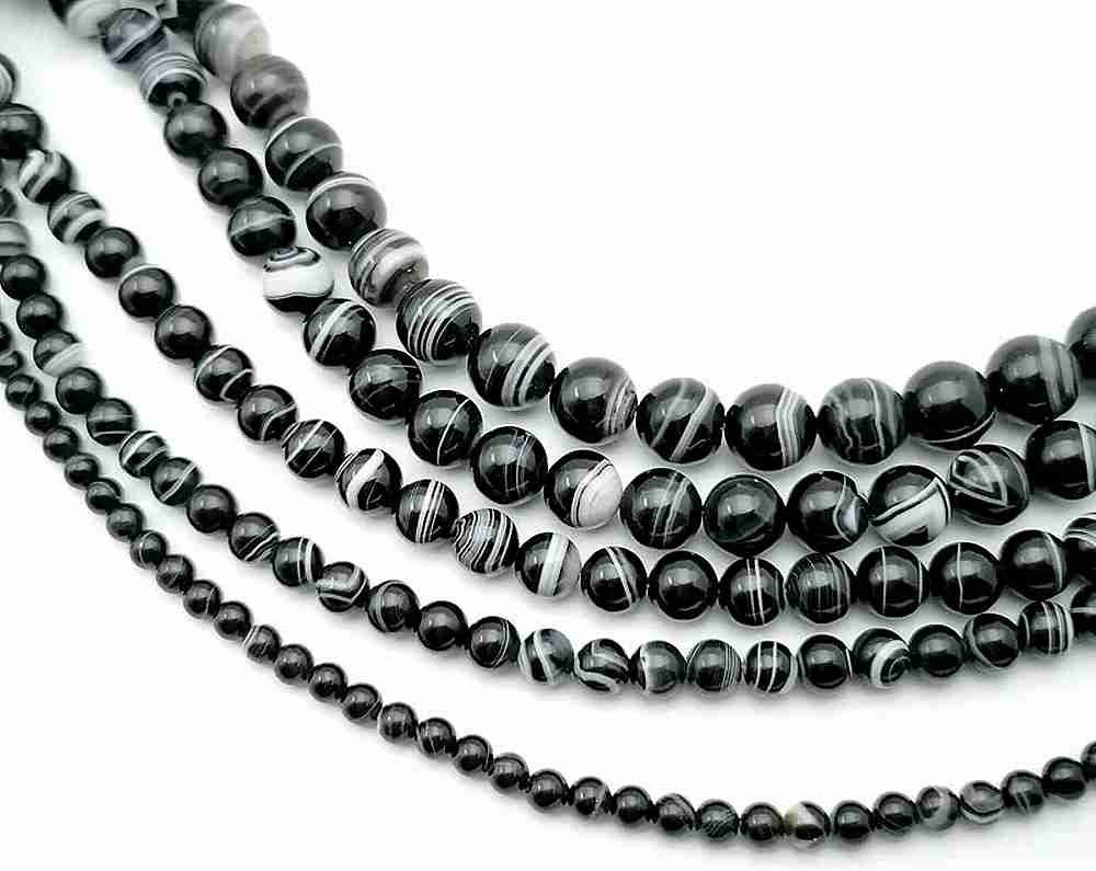LOT DE 10 PIECES - AGATE NOIRE STRIÉE - A RAYURES - PIERRE GEMME - PERLES RONDES - NOIR / BLANC