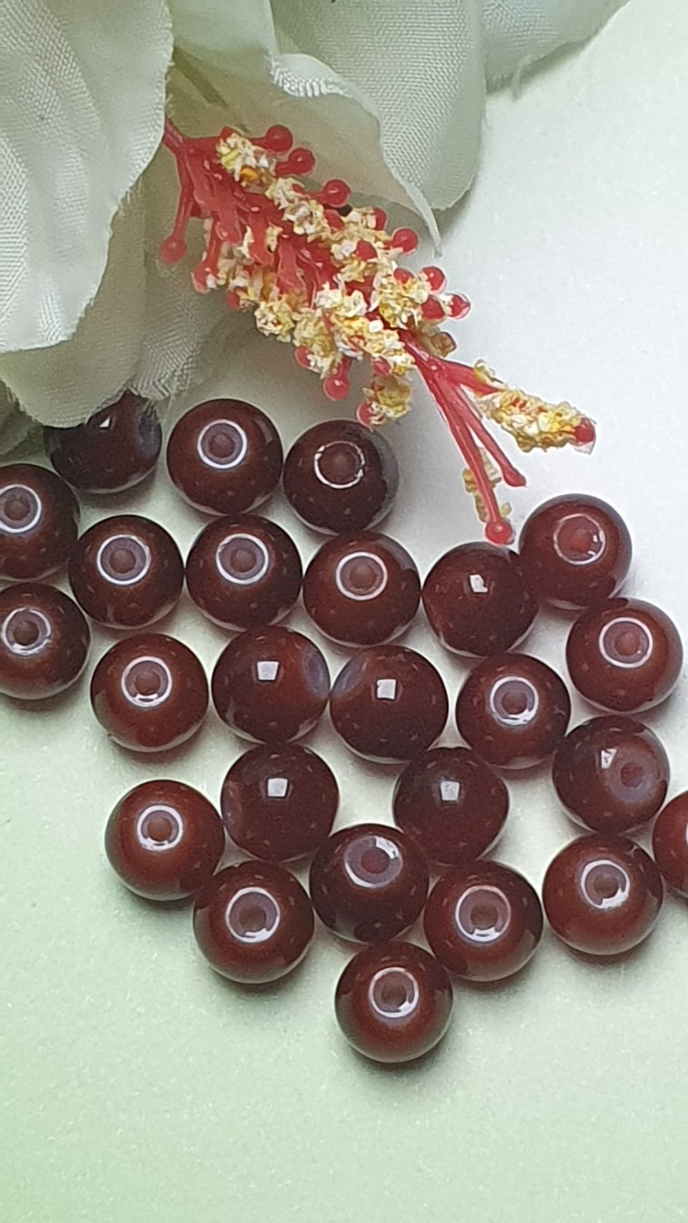 10 perles jade ton ambre foncé 8x7.5mm trou de 1.5mm. N°74