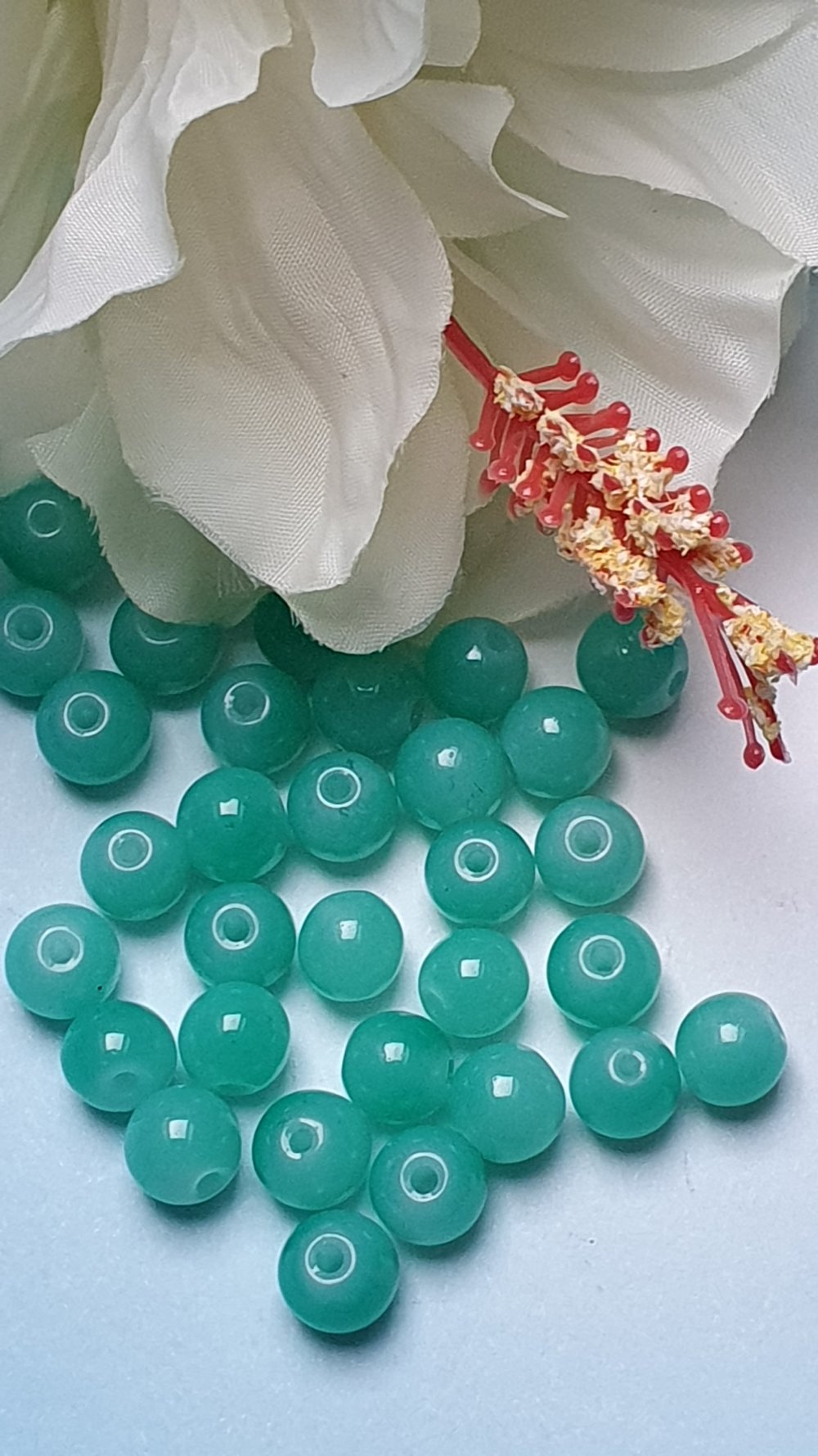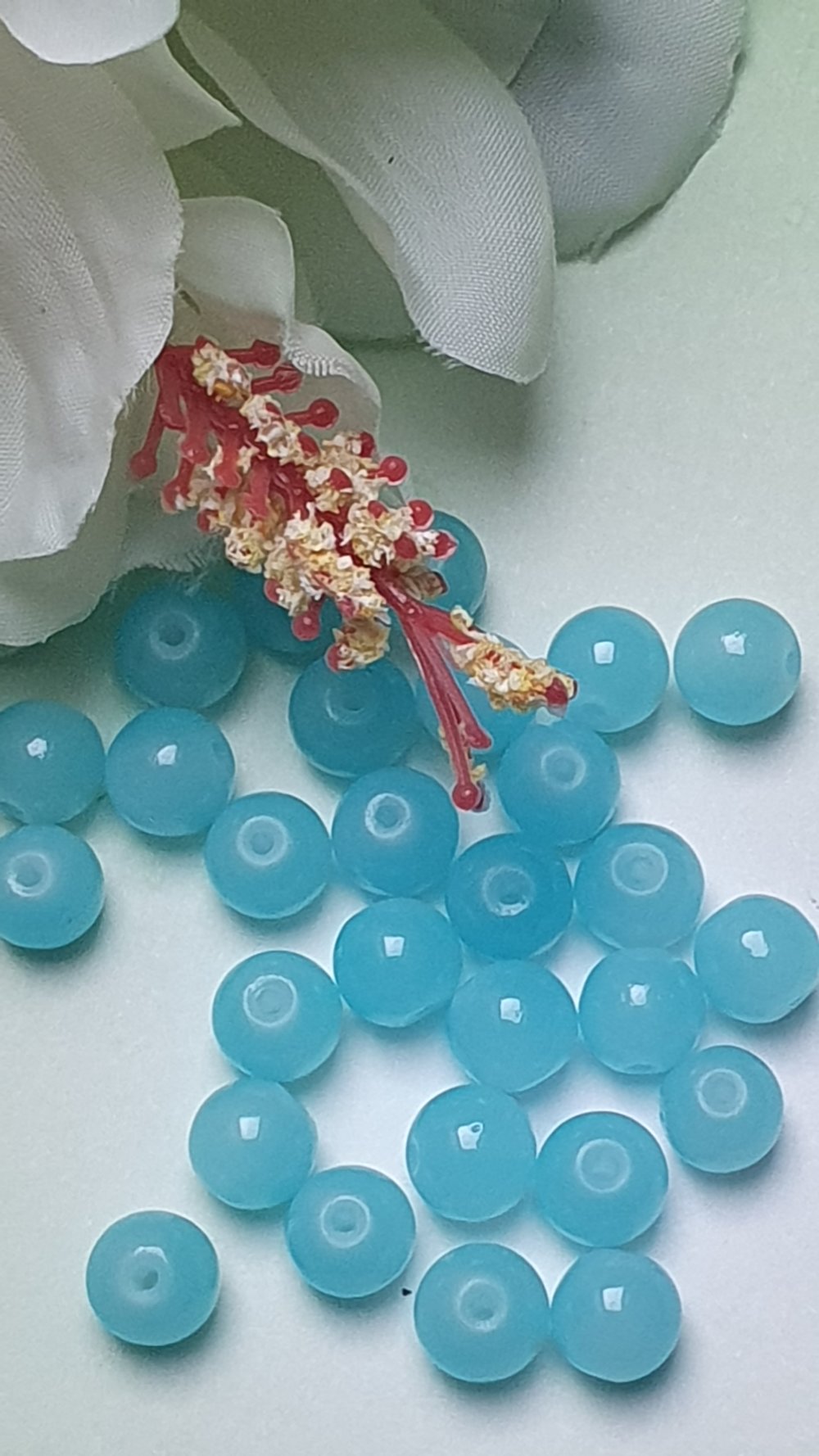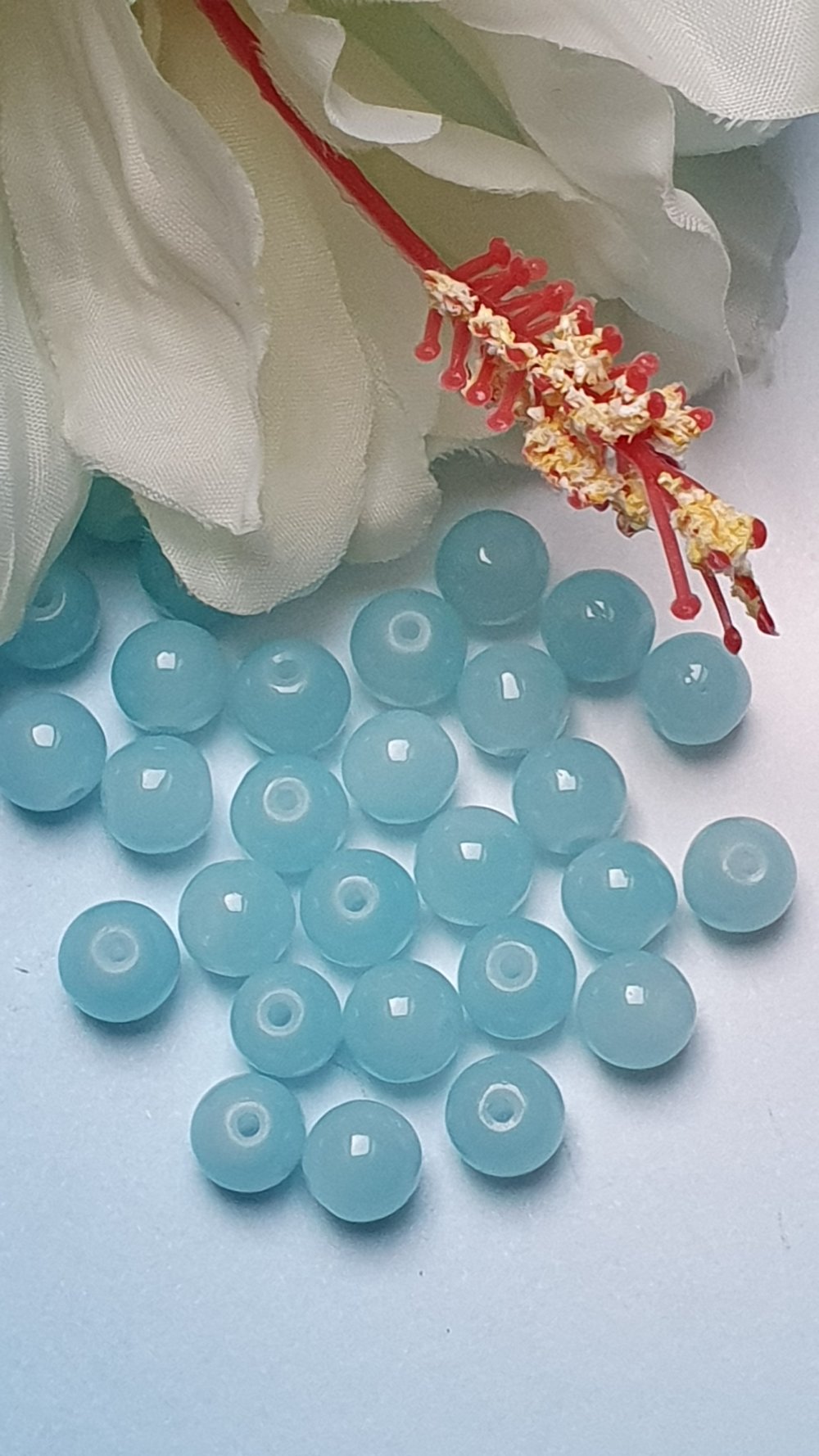10 perles jade ton bleu ciel 8x7.5mm trou de 1.5mm. N°64