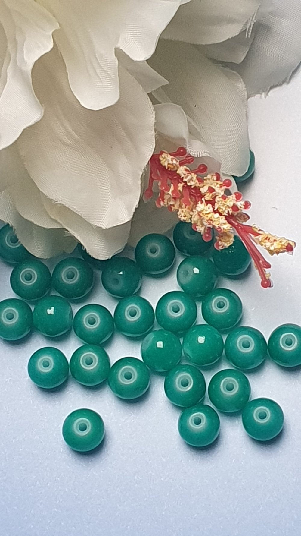 10 perles jade ton vert 8x7.5mm trou de 1.5mm. N°70
