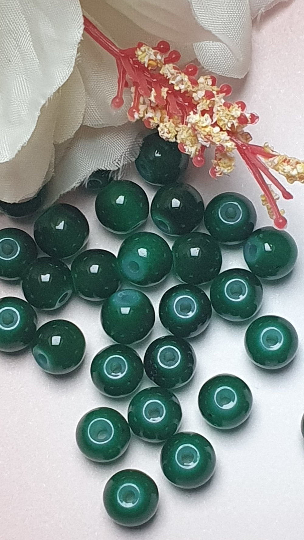 10 perles jade ton vert foncé 8x7.5mm trou de 1.5mm. N°68