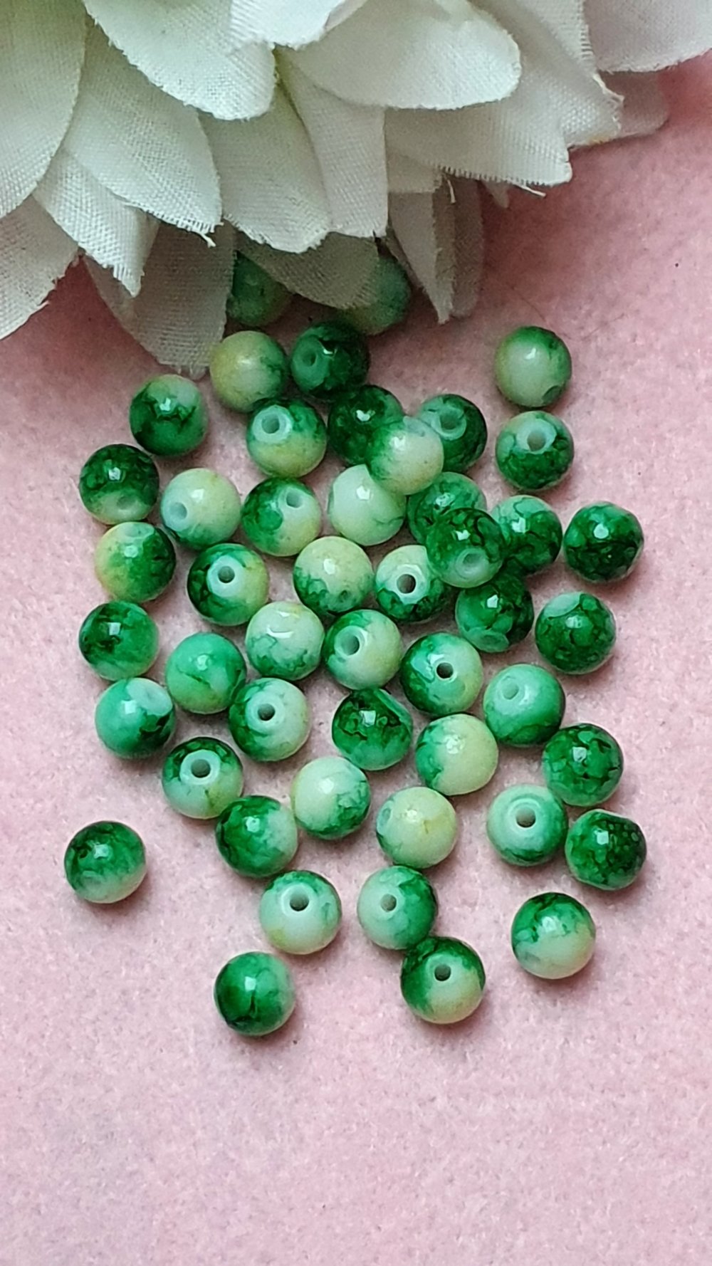 10 perles jade ton vert marbré 6x5mm trou de 0.8mm. N°31