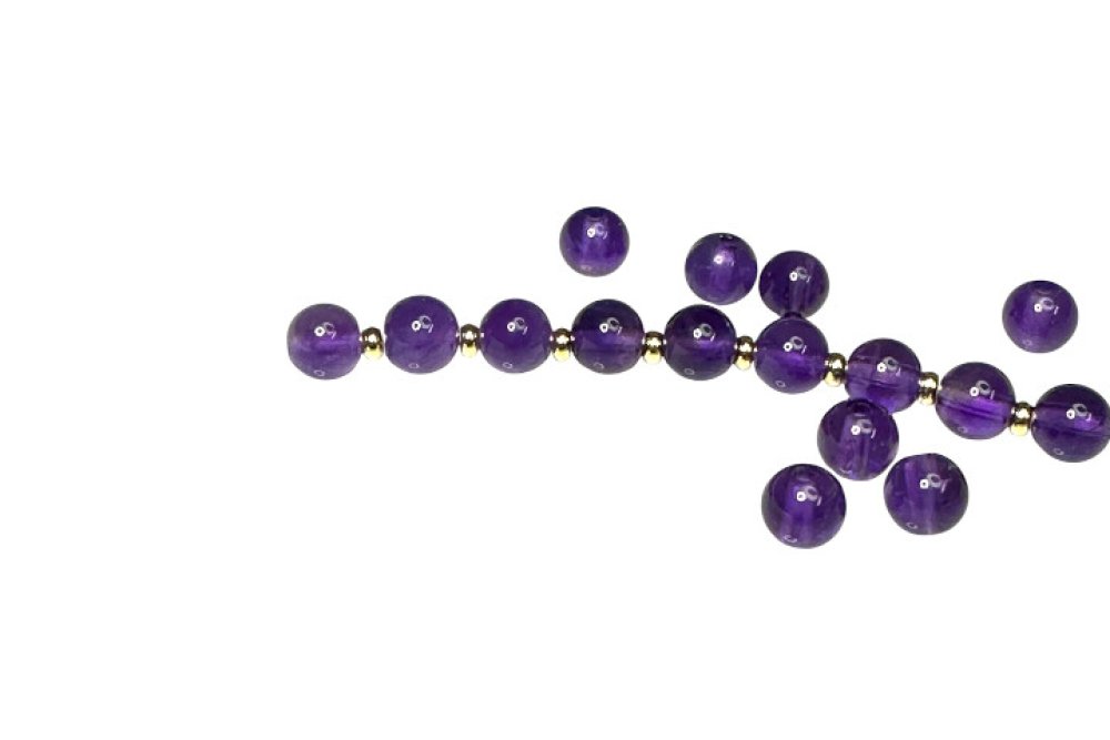 Lot composé de dix perles rondes de pierre d'améthyste, qualité AAA.